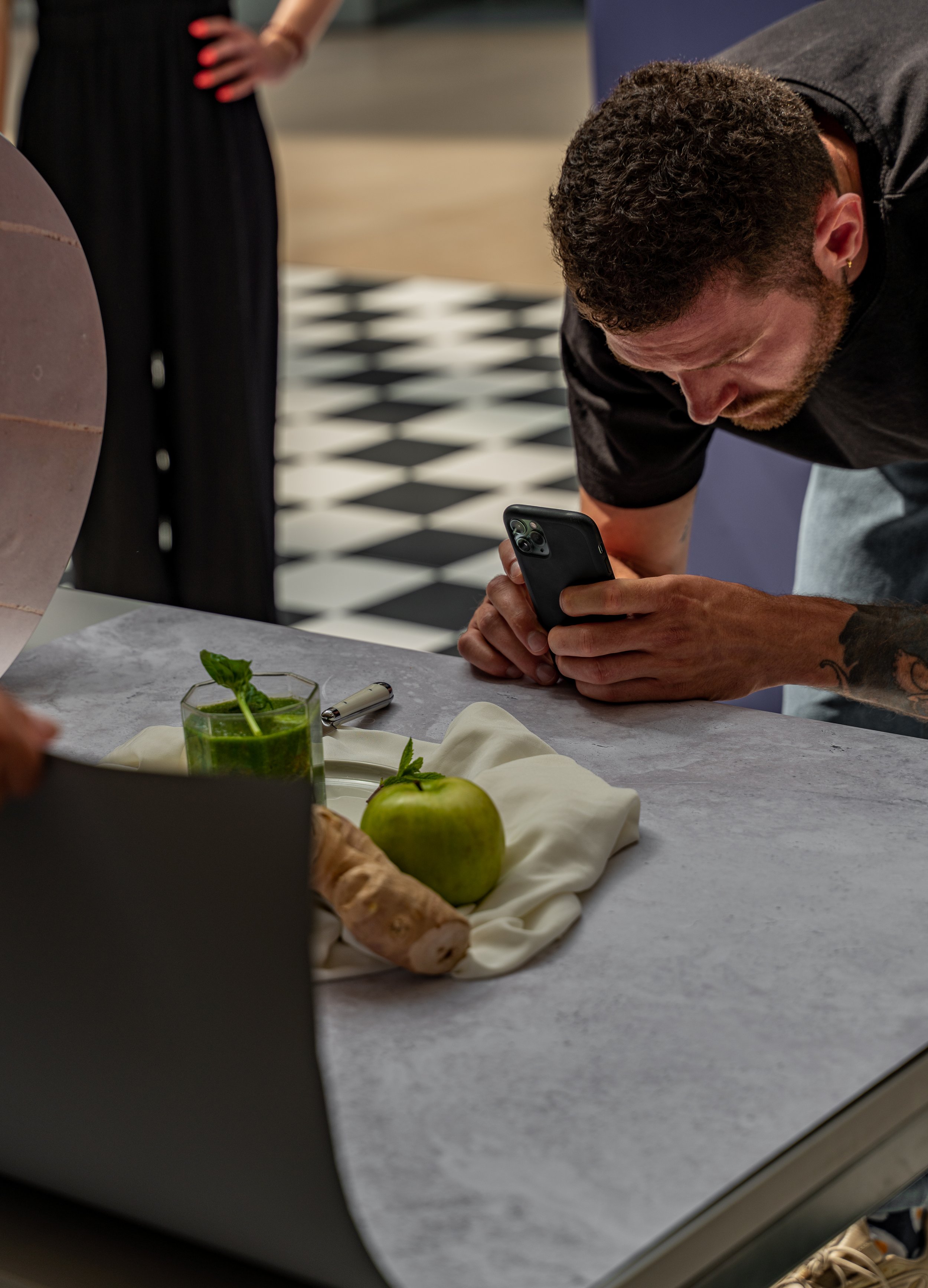 Tandis que le vendredi était dédié à un cours “Premiers pas vers la photographie culinaire”, j’avais ainsi réalisé Green smoothie préparé le matin. Il nous a servi de base pour le cours de stylisme culinaire. Ce fut surtout l'occasion de montrer qu'une photo, ça se réfléchit, se construit et que rien n'est laissé au hasard !