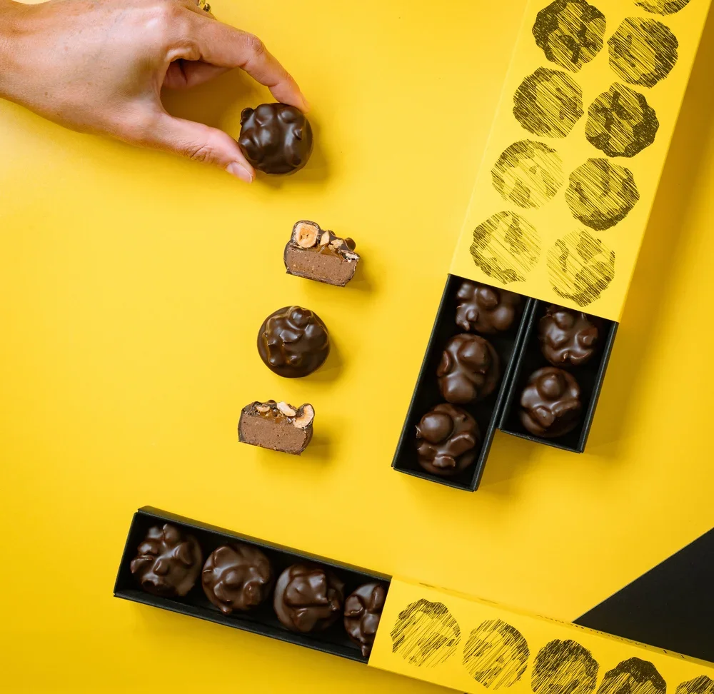 Chaque création est une pièce d’orfèvrerie gourmande : des ganaches délicates aux pralinés croquants, en passant par les caramels onctueux et les spécialités comme le Rocher Lingon.